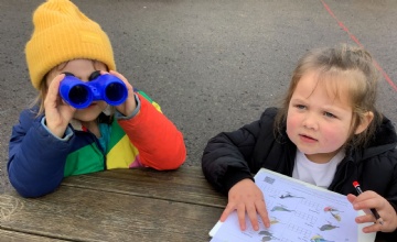 Chilton’s Science Lead Carol Isaac made bird identification charts for children to use who scanned their surroundings eagerly for feathered visitors, using the naked eye and getting close up images by using binoculars.