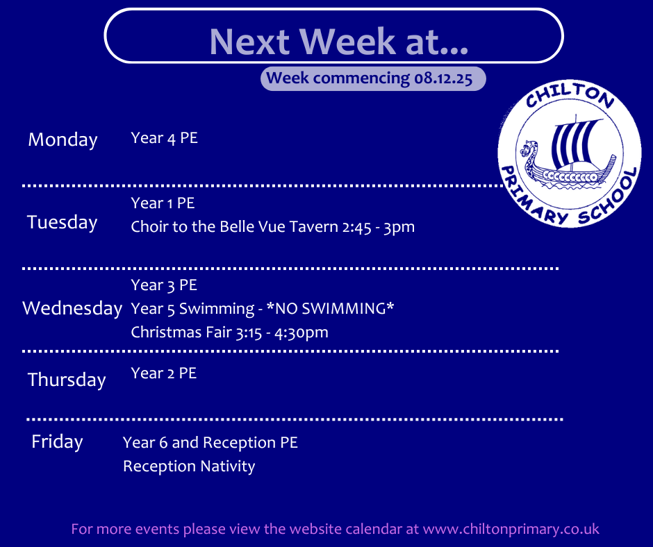 Thank you all for another wonderful week at Chilton! Although it has certainly been a busy one, we know the coming days are about to become even busier as we move deeper into this festive season. The energy around school is fantastic, and that is very much down to your support and the enthusiasm of our children.