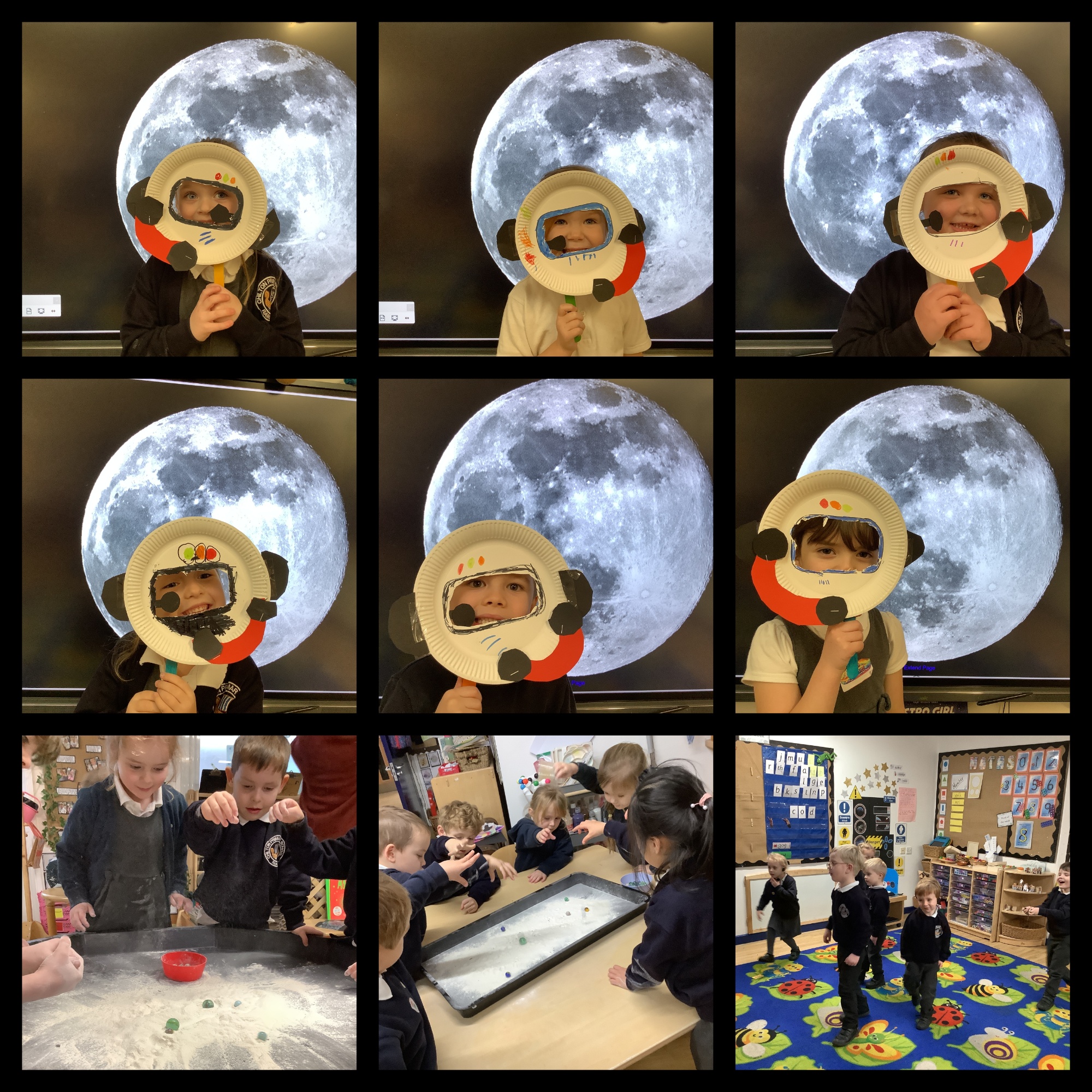 This week, we have continued our learning about Space! We have been focusing on the moon and the moon landing this week. To get the idea that the moon landing was in the past, we first spoke about what the past and present means with the children and sorted toys into those used in the past and those used nowadays in the present. We learned about the moon landing and then pretended to be Neil Armstrong and reporters to ask and answer questions about the moon landing. We will learn what the moon is like and then write some facts about the moon.