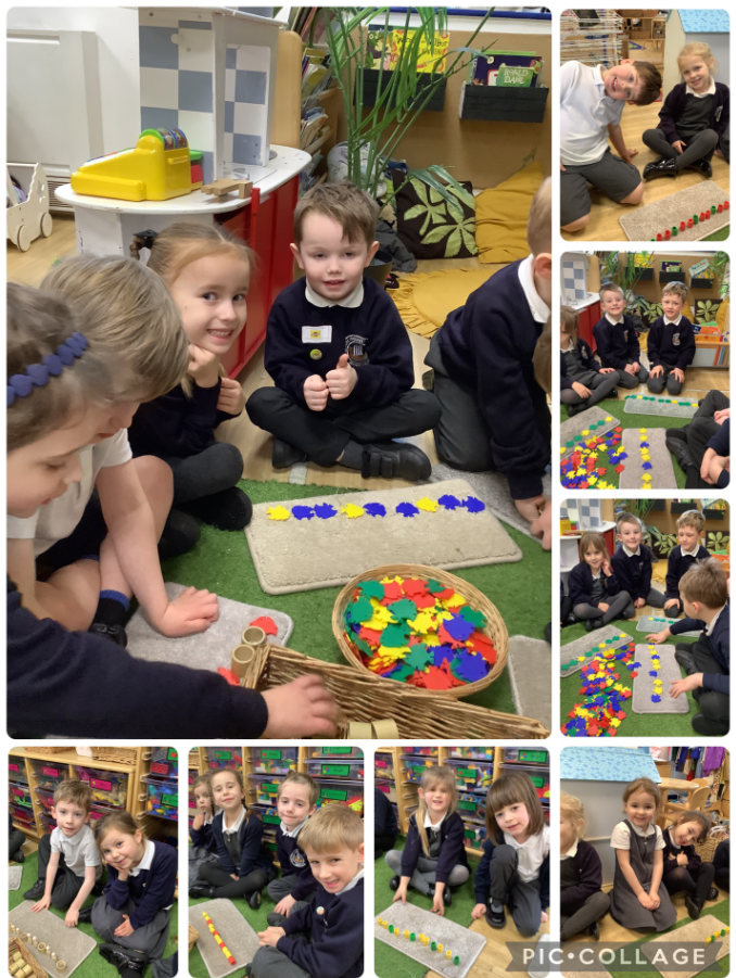 This week we have been learning about repeating patterns. We have been focusing on ABB patterns (e.g. red, blue, blue, red, blue, blue). We had to find the pattern and then continue that pattern, we also had to make our own ABB repeating pattern as well as finding errors in these patterns and fixing them.