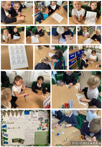 On Monday and Tuesday, we used cubes to help us break numbers into parts, and help us subtract. We looked carefully at the calculation, counting out how many cubes we need, then we broke away the amount we needed to subtract to give us an answer. On Wednesday, we have been subtracting by using our number bonds and part-part-whole models. We had to use the part-part-whole models correctly with the Numicon tiles and then as a challenge we had to write a subtraction calculation to match it. This was tricky but we were so fabulous at this!