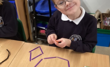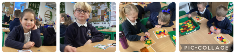 Later in the week, we took part in a carousel of activities. We had a go at making 2D shapes from lollysticks, playdough, thinking about whether the shape has straight or curved sides as well as the number of sides it has. We also used shapes to make pictures and/or patterns. To the end the week we looked at patterns, the children were so good at this, well done Year 1!