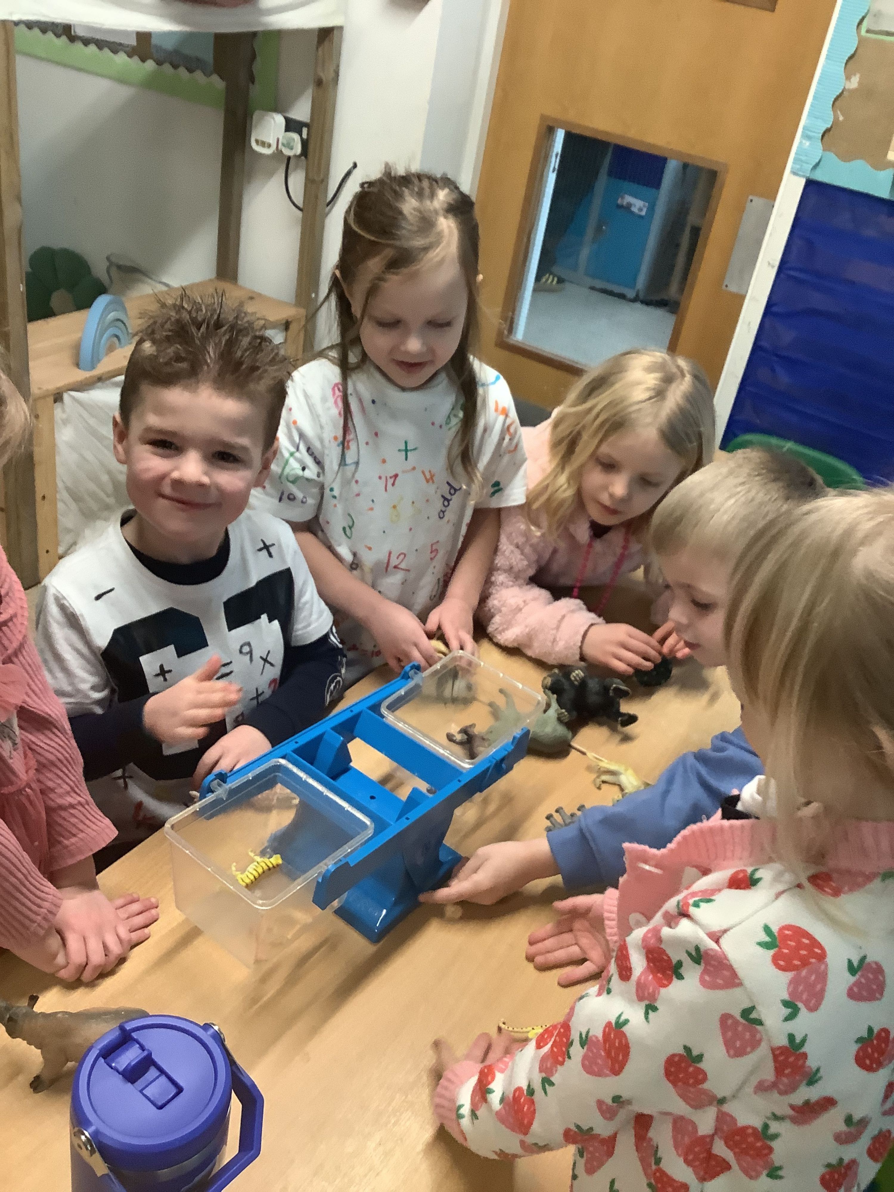 Throughout the week, the children measured various items using cubes. For example, they found that the mass of a glue stick was equivalent to 8 cubes. We concluded the week by adding and subtracting mass, which helped reinforce their understanding of these concepts. On Friday, we celebrated our the best, Number Day, where our activities centred around the theme of “Equal Smequal.” The children created equal groups of animals using the balancing scales and engaged in ordering and comparing the heights of different animals. In the afternoon, we enjoyed reading “1 is a Snail and 10 is a Crab,” which allowed us to use pictures of various feet to demonstrate how to represent numbers in different ways.