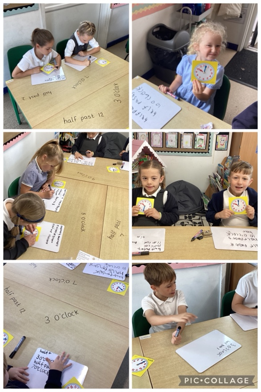 This week, we’ve been embarking on a journey as terrific time tellers! We started with a recap about the minute hand and the hour hand. It was essential for everyone to grasp the fundamentals before moving on, and we are pleased to say that the entire year demonstrated great enthusiasm and understanding while learning how to tell the time to the hour and to half past. Their faces lit up as they successfully identified the times on the clock, which was heartening to see!