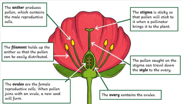 This week in thematic, we have finished off our ‘Across the Pond’ topic by learning about the different life cycles of birds, amphibians and reptiles. We then looked at the reproductive cycle of flowering plants. We learnt that the stamen is held up by the filament and produces pollen which needs to combined with the ovules in the plant to create a seed. The pollen makes it’s way to the ovules by landing on the sticky surface of the stigma and making its way down the style to the ovules which are protected by the ovary. It’s vital that living things have a way of reproducing, otherwise they would go extinct.