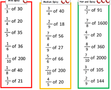 We would like the children to practice fractions of amounts at home. Here are some calculations: