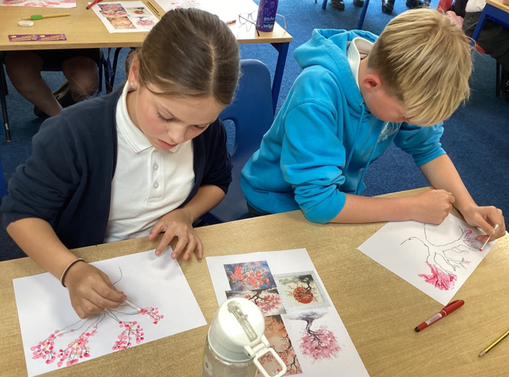 After drawing the character 'Kensuke' - a Japanese man from our text - from the description in the book, we described him using figurative language and expanded noun phrases.  We also learnt more about the effects of the Blitz during WWII and analysed a poem based on it.  From this, we wrote our own poems using emotive language.  To understand the Japanese culture better, we painted cherryblossom trees and tried to use chopsticks as part of Reading for Pleasure.  Next week, we will focus on writing in role as Kensuke, showing his anger towards Michael.  Afterwards, we will write about Kensuke's flashback onboard a ship.