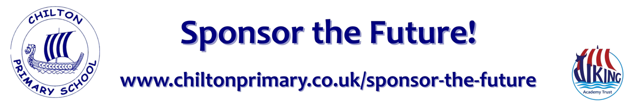 Express your interest by completing the link below, or simply contact Mr McAuley or our office team for more information or to secure your sponsorship today. Together, we can create brighter futures for our children and our community. Thank you for considering this opportunity to partner with Chilton Primary School— we can’t wait to work with you!